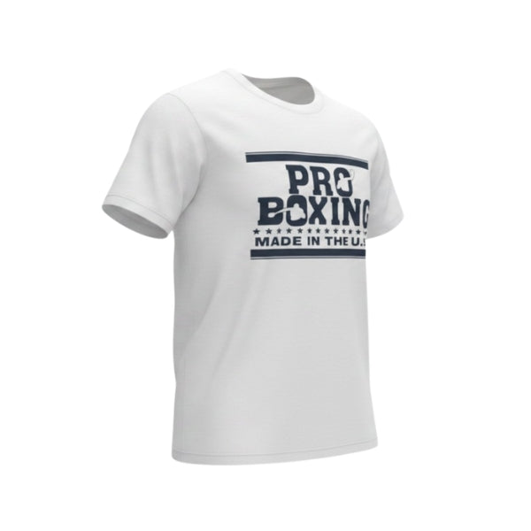 Represent the fight lifestyle with the ProBoxing® Graphic T-Shirt—built for everyday comfort and bold athletic style. Featuring a clean “Pro Boxing – Made in the USA” front print, this tee delivers a classic look whether you're in the gym, at the gym, or out and about.