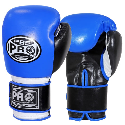 ProBoxing® Classic Leather Boxing Gloves - Training Gloves - Blue & Black
